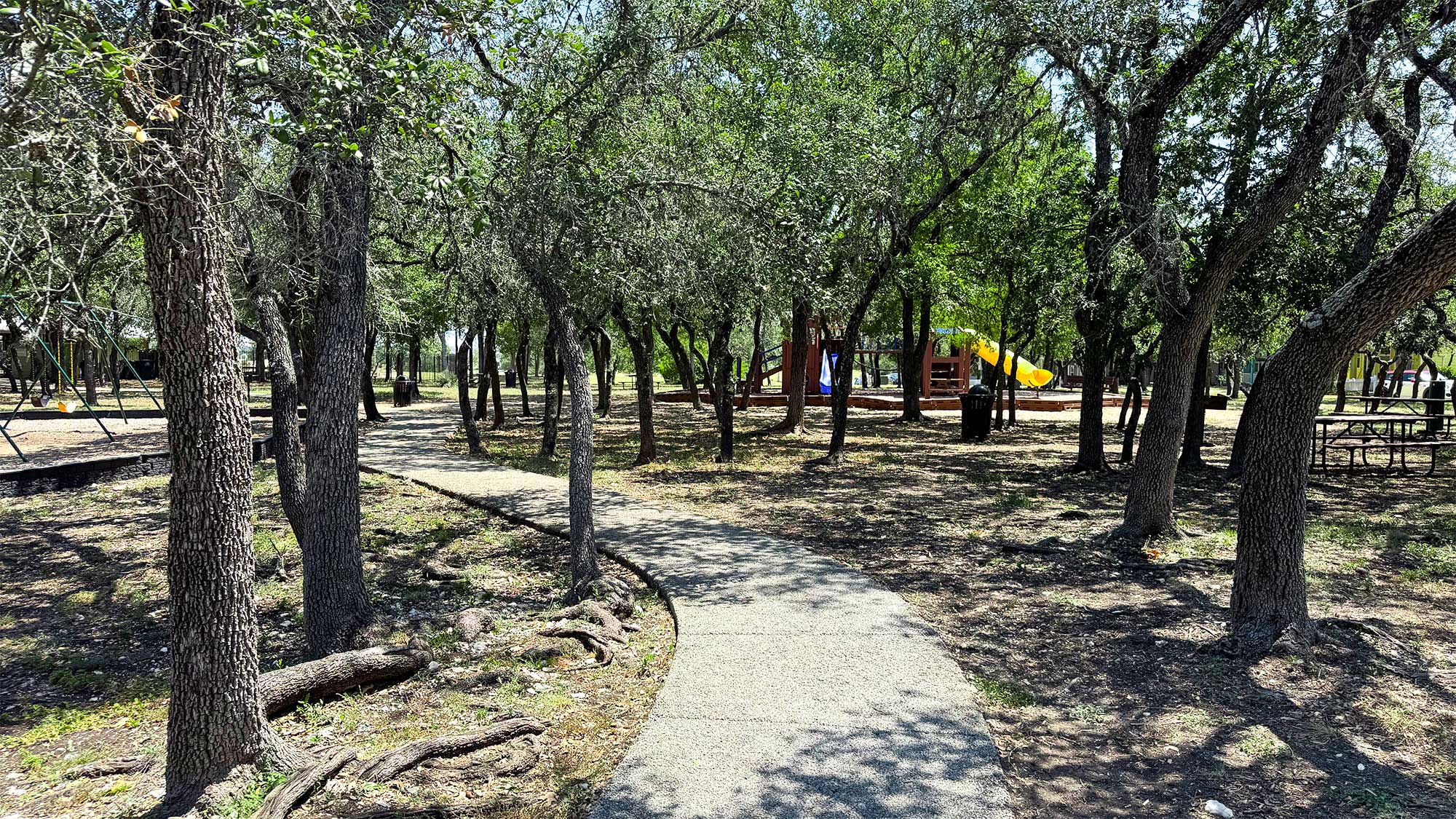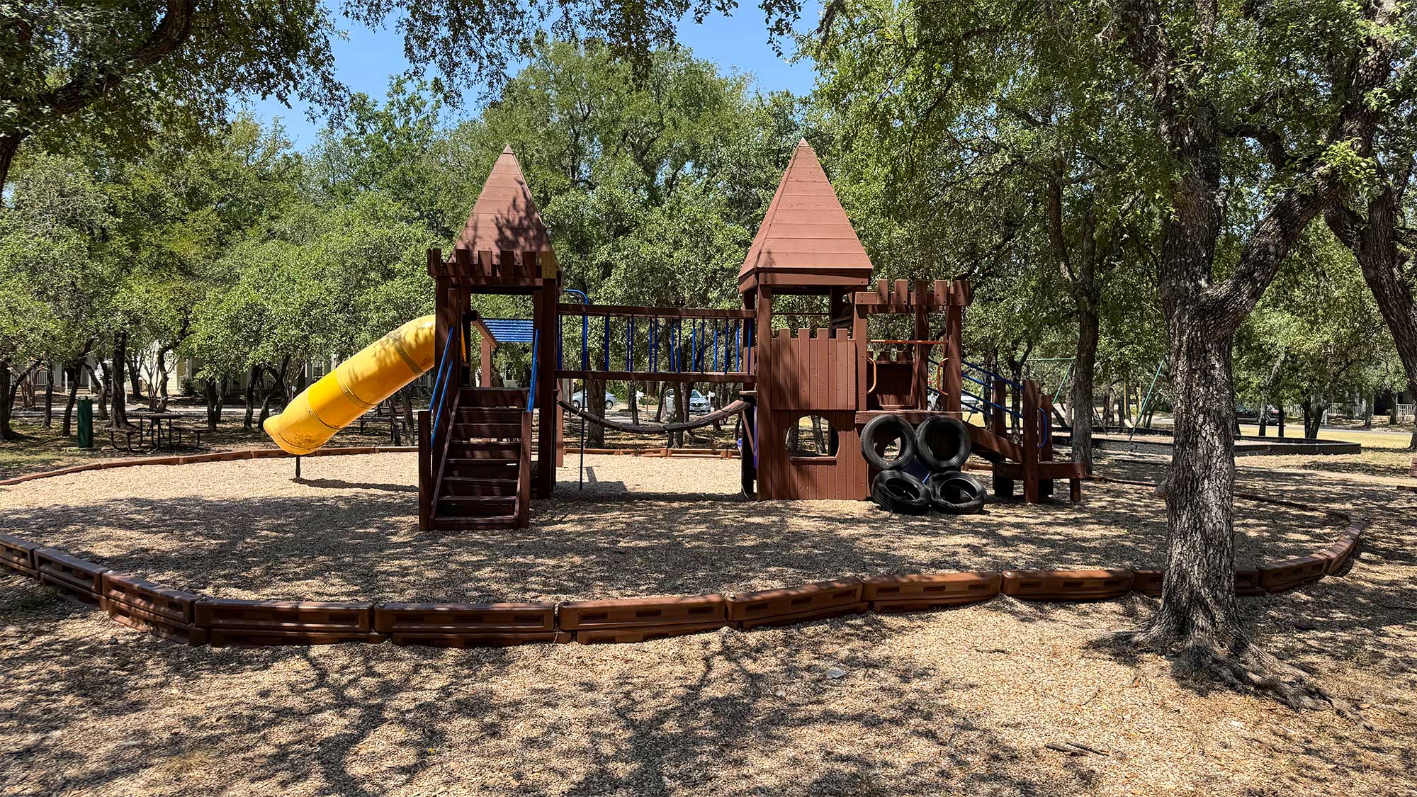 • Beautifully treed park east of the Community Center with Playground, Picnic Tables, Charcoal Grill, and Parking